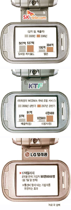 ¿Ã »ó¹Ý±â ±¹³»¿¡¼ ·Î¹Ö ¼ºñ½º¸¦ ÀÌ¿ëÇÑ ¿Ü±¹ÀÎÀº 43¸¸4000¸íÀ¸·Î Áö³ÇØ °°Àº ±â°£ 10¸¸6000¸íÀÇ 4¹è·Î ´Ã¾ú´Ù. KTF°¡ ¾òÀº ¼öÀÔµµ Áö³ÇØ »ó¹Ý±â 37¾ï¿ø¿¡¼ ¿ÃÇØ »ó¹Ý±â 91¾ï¿øÀ¸·Î Áõ°¡Çß´Ù.