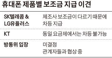 ¹ý¿¡ ÀÌ ºÎºÐÀÌ ¸íÈ®ÇÏÁö ¾Ê¾Æ ÀÌÅë»ç¸¶´Ù ´Ù¸¥ ÇØ¼®À» Çϰí ÀÖ´Ù. SKÅÚ·¹ÄÞ°ú LGÀ¯Ç÷¯½º´Â Á¦Ç°º°·Î Â÷À̸¦ µÑ ¼ö ÀÖ´Ù°í ÁÖÀåÇϰí ÀÖ°í, KT´Â Â÷À̸¦ µÑ ¼ö ¾ø´Ù´Â ÂÊÀÌ´Ù. SKÅÚ·¹ÄÞ°ú LGÀ¯Ç÷¯½º´Â ´ÙÀ½´Þ 1ÀϺÎÅÍ °ø½ÃÇÏ´Â º¸Á¶±Ý ÃѾ×ÀÌ ÀÌÅë»ç¿Í Á¦Á¶»ç°¡ °¢°¢ ÁÖ´Â º¸Á¶±ÝÀÌ ÇÕÃÄ °ø°³µÇ´Â ¸¸Å, Á¦Á¶»ç¿¡¼ ÁÖ´Â º¸Á¶±Ý ¾×¼öÀÇ Â÷ÀÌ¿¡ µû¶ó ÃѺ¸Á¶±ÝÀÌ ´Þ¶óÁ®¾ß ÇÑ´Ù°í ÁÖÀåÇÑ´Ù. Â÷º° Çã¿ëÀ» ÁÖÀåÇÏ´Â Åë½Å¾÷ü ÀÓ¿øÀº ¡°Á¦Á¶»ç¸¶´Ù º¸Á¶±Ý Áö±Þ¾×ÀÌ ´Ù¸£°í ½ÉÁö¾î ¾ÖÇÃÀº 1¿øµµ ÁÖÁö ¾Ê´Âµ¥, °°Àº ¿ä±Ý´ë¿¡´Â ¹«Á¶°Ç µ¿ÀÏÇÏ°Ô º¸Á¶±ÝÀ» ÁÖ¸é °á±¹ ÀÌÅë»ç°¡ ³ª¸ÓÁö¸¦ ºÎ´ãÇ϶ó´Â °ÍÀÌ¾î¼ ¸»ÀÌ µÇÁö ¾Ê´Â´Ù¡±¸ç ¡°Á¦Á¶»ç°¡ ÁÖ´Â º¸Á¶±Ý¿¡ ¸ÂÃç ÈÞ´ëÆù ¸¶´Ù º¸Á¶±ÝÀ» Â÷µî Áö±ÞÇÒ ¼ö ÀÖ¾î¾ß ÇÑ´Ù¡±°í ¸»Çß´Ù.