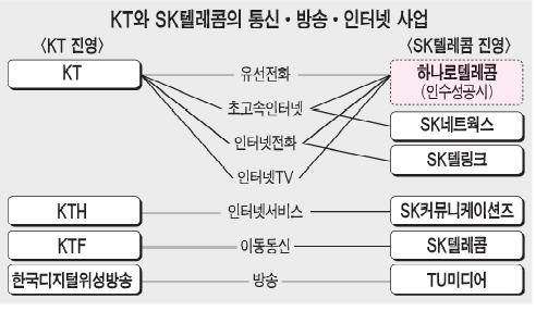 SKÅÚ·¹ÄÞÀÌ Àμö¿¡ ¼º°øÇÒ °æ¿ì ±¹³» Åë½Å½ÃÀåÀº £§KT±×·ì£§°ú £§SKÅÚ·¹ÄÞ+Çϳª·ÎÅÚ·¹ÄÞ£§ÀÇ ¾ç°­ ±¸µµ·Î ±Þ¼ÓÈ÷ ÀçÆíµÉ Àü¸ÁÀÌ´Ù.