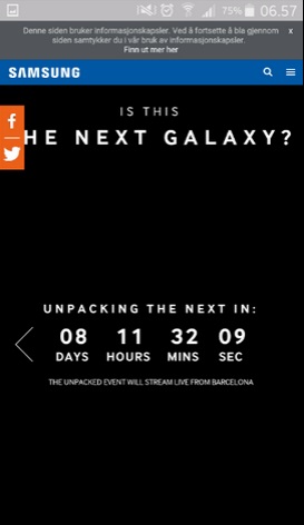 ¡´ÀÌ »çÁøÀº 3¿ù 1ÀÏ ¹Ù¸£¼¿·Î³ª ¸ð¹ÙÀÏ¿ùµåÄá±×·¹½º(MWC2015)¿¡¼­ ¹ßÇ¥µÉ »ï¼º°¶·°½ÃS6¹ßÇ¥ Ä«¿îÆ®´Ù¿îÀÌ ½ÃÀÛµÆÀ½À» º¸¿©ÁØ´Ù. ¡´»çÁø=³ë¸£¿þÀ̻Z¡µ