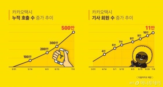 īī¿ÀÅýô Ãâ½Ã 3°³¿ù ¸¸¿¡ ´©Àû È£Ãâ ¼ö°¡ 500¸¸°ÇÀ» ³Ñ¾î¼¹°í, Àü±¹ Åýñâ»ç ȸ¿ø¼ö°¡ 11¸¸¸íÀ» ³Ñ¾î¼¹´Ù. ÇÏ·ç Æò±Õ È£Ãâ¼ö°¡ 15¸¸°Ç¿¡ ´ÞÇϸç Àü±¹ Åýà 30¸¸´ë Áß 35% ÀÌ»óÀÌ Ä«Ä«¿ÀÅýø¦ ÀÌ¿ëÇϰí ÀÖ´Ù.
