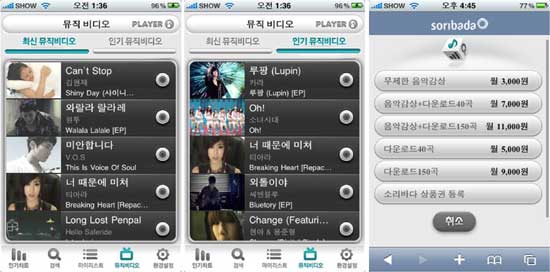 ¶ÇÇÑ ÇÚµåÆù ¼Ò¾×°áÁ¦ ¼ºñ½º¸¦ Ãß°¡ÇØ ¼Ò¸®¹Ù´Ù ¾îÇÃÀ» ÅëÇØ À½¾Ç ÀÌ¿ë±ÇÀ» ¹Ù·Î ±¸ÀÔÇÒ ¼ö ÀÖµµ·Ï ÇßÀ¸¸ç, 3G ³×Æ®¿öÅ© ¼³Á¤À» °ÈÇØ ½Ç½Ã°£ ½ºÆ®¸®¹Ö »ç¿ë ¸ðµå·Î ¼³Á¤Çϸé 3G »óÅ¿¡¼ÀÇ À½¾Ç°ú ¹ÂÁ÷ºñµð¿À Àç»ýÀ» Á¦ÇÑÇØ ¿ä±ÝÀ» ¹ß»ý½ÃŰÁö ¾Ê´Â´Ù.