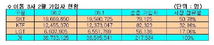 Áõ°¡ÇÑ °¡ÀÔÀÚ ¼ö´Â KTF°¡ 8¸¸2323¸íÀ¸·Î 3»ç °¡¿îµ¥ °¡Àå ¸¹Àº °¡ÀÔÀÚ¸¦ À¯Ä¡Çß´Ù.