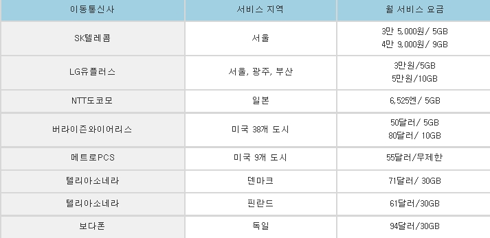 ÀϺ», ¿À½ºÆ®¸®¾Æ, µ§¸¶Å©, Çɶõµå, ½º¿þµ§, µ¶ÀÏ µî¿¡ µû¶ó Á¶±Ý¾¿ Â÷ÀÌ´Â ÀÖÁö¸¸ ±¹³»¿Í ºñ½ÁÇϰųª ¾à°£ ´õ Àú·ÅÇÑ ¼öÁØÀÌ´Ù. ¹°·Ð ÀÌµé ±¹°¡´Â LTE¸¦ ¸ÕÀú ¼ºñ½ºÇϰí ÀÖ´Ù´Â Á¡Àº °í·ÁÇØ¾ß ÇÒ ºÎºÐÀÌ´Ù.
