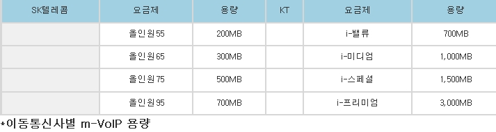 ½ºÄ«ÀÌÇÁ, ¹ÙÀ̹ö¿Í °°Àº m-VoIP¸¦ ¾ó¸¶³ª Áö¿øÇÏ´Â Áöµµ °ü°ÇÀÌ´Ù. ±âÁ¸ 3G ¹«Á¦ÇÑ µ¥ÀÌÅÍÀÇ °æ¿ì ¿ä±ÝÁ¦¿¡ µû¶ó 200¡700MB Á¤µµÀÇ ¿ë·®À» Á¦°øÇÑ ¹Ù ÀÖ´Ù. 200MBÀÇ ¿ë·®Àº m-VoIP·Î ¾à 1,000ºÐ(16½Ã°£) Á¤µµÀÇ À½¼ºÅëȰ¡ °¡´ÉÇÏ´Ù. 700MBÀÇ °æ¿ì ¾à 3,500ºÐ(48½Ã°£)ÀÌ´Ù.