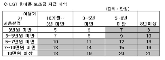[¸Ó´ÏÅõµ¥ÀÌ À̱¸¼ø ±âÀÚ]LGÅÚ·¹ÄÞ(´ëÇ¥ ³²¿ë www.lgtelecom.com)Àº 27ÀÏ Á¤º¸Åë½ÅºÎ¿¡ ÈÞ´ëÆù º¸Á¶±Ý °ü·Ã ¾à°ü½Å°í¸¦ ¸¶Ä¡°í 18°³¿ù ÀÌ»ó °¡ÀÔÀڵ鿡°Ô 5¸¸¿ø¿¡¼ ÃÖ´ë 21¸¸¿ø±îÁö º¸Á¶±ÝÀ» Áö±ÞÇÑ´Ù°í ¹àÇû´Ù.