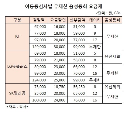 A¾¾ÀÇ °æ¿ì¶ó¸é ¹«Á¦ÇÑ ÅëÈ ¿ä±ÝÁ¦·Î °¥¾ÆÅ¸´Â °Ô ¼ÕÇØ´Ù. Àڻ硤Ÿ»ç °¡ÀÔÀÚ¿Í ¹«Á¦ÇÑ ÅëÈ(¹«¼± ±âÁØ)¸¦ ÇÒ ¼ö ÀÖ´Â ¿ä±ÝÁ¦´Â SKÅÚ·¹ÄÞ 7¸¸5000¿ø, KT 6¸¸7000¿ø, LGÀ¯Ç÷¯½º 6¸¸9000¿ø(ºÎ°¡¼¼ º°µµ)ºÎÅÍ ÀÖ´Ù. Áö±Ý º¸´Ù ÇÑ´Þ 2¸¸¿ø ÀÌ»ó ´õ ³»¾ßÇÑ´Ù´Â ¾ê±â´Ù.