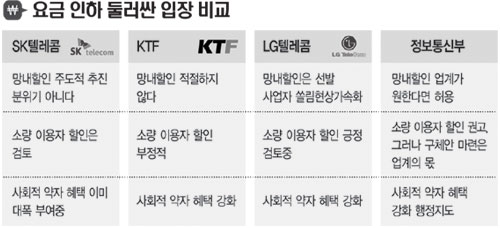 ¼ÒºñÀÚµéÀÇ ¿ä±Ý ÀÎÇÏ ¿©·ÐÀ» µî¿¡ ¾÷Àº Á¤ºÎ´Â 2002³â ÀÌÈÄ Áߴܵƴø ¡®°¡ÀÔÀÚ°£ ÇÒÀΡ¯ Ä«µå¸¦ º»°ÝÀûÀ¸·Î ²¨³»µé¾ú°í ¸íºÐ¿¡¼ µÚÁö´Â À̵¿Åë½Å¾÷üµéÀº ¡®¿ï¸ç °ÜÀڸԱ⡯ ½ÄÀ¸·Î µû¶ó°¡Áö ¾ÊÀ» ¼ö ¾ø´Â óÁö´Ù. ÇÏÁö¸¸ ¸ÅÃâ Ãà¼Ò¿Í °¡ÀÔÀÚ ½ò¸² Çö»ó ½Éȸ¦ ³»¼¼¿î ¾÷üµéÀÇ ¹Ý¹ßµµ ¸¸¸¸Ä¡ ¾ÊÀº »óȲÀÌ´Ù.