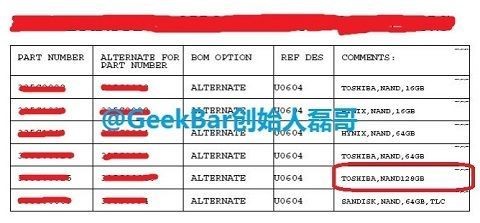 °ø°³µÈ ¼­·ù Áß Çϳª´Â ¾ÆÀÌÆù6ÀÇ ³½µåÇ÷¡½Ã °ü·Ã »ç¾çÀ» µµ½ÄÈ­ÇØ³õÀº °ÍÀ¸·Î Á¦¸ñ¿¡´Â £§NAND-1YNM-128GX8-TLC-PPN1.5-128G£§¶ó´Â ¹®±¸°¡ ÀûÇôÀÖ´Ù.