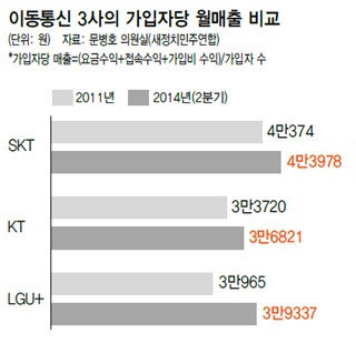 ¹Ì·¡Ã¢Á¶°úÇÐºÎ¿Í ¹æ¼ÛÅë½ÅÀ§¿øÈ¸¿¡ ´ëÇÑ ±¹Á¤°¨»ç¿¡¼­µµ ´Ü¸»±â Ãâ°í°¡ ¹× À̵¿Åë½Å ¿ä±ÝÀÎÇÏ Á¤Ã¥À» º´ÇàÇØ¾ß ÇÑ´Ù´Â ÁöÀûÀÌ ¸¹¾Ò´Ù. ¹®º´È£ ÀÇ¿ø(»õÁ¤Ä¡¹ÎÁÖ¿¬ÇÕ)Àº ¡°2013³â ÇöÀç ¿¡½ºÄÉÀÌÅÚ·¹ÄÞ(SKT)ÀÇ »ç³»À¯º¸±ÝÀÌ 15Á¶9000¾ï¿ø¿¡ À̸£°í, ÄÉÀÌÆ¼(KT)¿Í ¿¤ÁöÀ¯Ç÷¯½º(LGU+)µµ °¢°¢ 10Á¶7000¾ï¿ø°ú 1Á¶5000¾ï¿ø¿¡ ´ÞÇÑ´Ù. °Å±â´Ù ¿¡½ºÄÉÀÌÅÚ·¹ÄÞÀÇ °¡ÀÔÀÚ´ç ¿ùÆò±Õ ¸ÅÃâÀÌ 2011³â 4¸¸374¿ø¿¡¼­ ¿ÃÇØ 2ºÐ±â 4¸¸3978¿øÀ¸·Î, ÄÉÀÌÆ¼´Â 3¸¸3720¿ø¿¡¼­ 3¸¸6821¿øÀ¸·Î, ¿¤ÁöÀ¯Ç÷¯½º´Â 3¸¸965¿ø¿¡¼­ 3¸¸9337¿øÀ¸·Î ±ÞÁõÇß´Ù. ¿©±â¿¡ ´ÜÅë¹ý ½ÃÇàÀ¸·Î ¸¶ÄÉÆÃºñ ÁöÃâÀÌ Å©°Ô ÁÙ¾îµç¸¸Å­ ¿ä±ÝÀÎÇÏ ¿©·ÂÀº ÃæºÐÇÏ´Ù¡±°í ÁöÀûÇß´Ù.