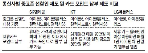 Áö³´Þ ¾ÖÇÃÀÇ £§¾ÆÀÌÆù6£§ Ãâ½Ã¿Í ÇÔ²² ±¹³» ÀÌÅë»çµéÀº 18°³¿ù µÚ ÈÞ´ëÆùÀ» ¹Ý³³ÇÏ´Â Á¶°ÇÀ¸·Î ¹Ì¸® Áß°íÆù ½Ã¼¼¸¸Å °¡°Ý¿¡¼ »©ÁÖ´Â £§Áß°íÆù ¼±º¸»ó ÇÁ·Î±×·¥£§À» µµÀÔÇß´Ù. LGÀ¯Ç÷¯½º°¡ £§Á¦·ÎŬ·´£§À¸·Î ¸Ç ¸ÕÀú Æ÷¹®(øßÚ¦)À» ¿¾ú°í, SKÅÚ·¹ÄÞÀÌ £§ÇÁ¸®Å¬·´£§, KT°¡ £§½ºÆÝÁö 0(Á¦·Î) Ç÷££§ µîÀ» µµÀÔÇß´Ù.