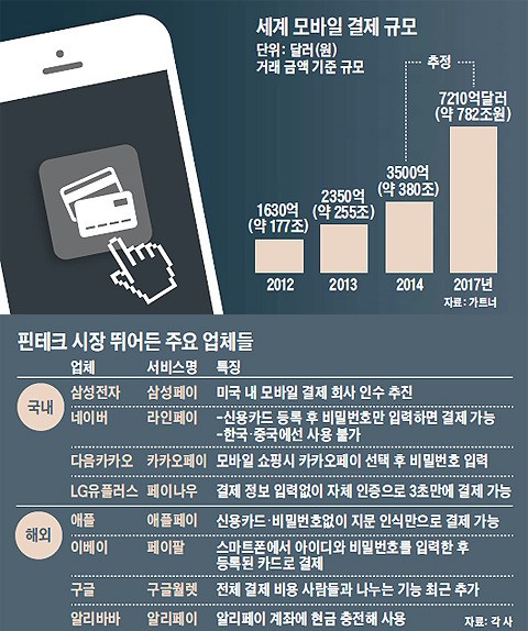 ÇØ¿Ü ±â¾÷µéÀº ÀÏÂġ ÀÌ ½ÃÀå¿¡ ¶Ù¾îµé¾ú´Ù. ±¸±ÛÀº 16ÀÏ(ÇöÁö ½Ã°¢) ±âÁ¸ÀÇ ¸ð¹ÙÀÏ °áÁ¦ Ç÷§Æû £§±¸±Û ¿ù·¿£§¿¡ °áÁ¦ ´ë±ÝÀ» ¿©·¯ ¸íÀÌ ³ª´² ³»´Â ±â´ÉÀ» Ãß°¡Çß´Ù. ¿¹¸¦ µé¾î ȸ½ÄÀ» ÇÏ°í ³ª¼­ °¢ÀÚ Àڱ⠸òÀ» °è»êÇÏ´Â £§´õÄ¡ÆäÀÌ£§µµ °¡´ÉÇÏ´Ù. ¾Æ¸¶Á¸µµ ¿Â¶óÀÎ ¼îÇθô £§¾Æ¸¶Á¸´åÄÄ£§¿¡¼­ »ç¿ëÇÒ ¼ö ÀÖ´Â °áÁ¦ ¼­ºñ½º¸¦ ¿î¿µ ÁßÀÌ´Ù. ¹Ì±¹ ÆäÀÌÆÈ°ú Áß±¹ ¾Ë¸®ÆäÀÌ´Â ÀÌ¹Ì Àü ¼¼°è ¸ð¹ÙÀÏ °áÁ¦ÀÇ 60~70%¸¦ Â÷ÁöÇϰí ÀÖ´Ù.