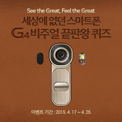 fjrigjwwe9r0UNIMO_MULTIBOARD:Brd_Contents LGÀüÀÚ´Â Àü·« ½º¸¶Æ®Æù ¡®LG G4¡¯ ±¹³» Ãâ½Ã¸¦ ¸Â¾Æ 17ÀϺÎÅÍ 26ÀϱîÁö ¿Â¶óÀÎ ÄûÁî À̺¥Æ® ¡®G4 ºñÁÖ¾ó ³¡ÆÇ¿Õ ÄûÁî!¡¯¸¦ ½Ç½ÃÇÑ´Ù. G4 ÁÖ¿ä ±â´ÉÀ» ¼ÒºñÀÚ°¡ ¹Ì¸® ¾Ë¾Æº¼ ¼ö ÀÖ°Ô ÇÏ´Â Âü¿©Çü À̺¥Æ®ÀÌ´Ù.