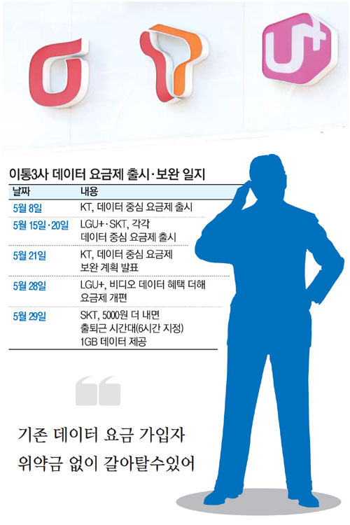 À̵¿Åë½Å 3»ç°¡ Áö³´Þ µ¥ÀÌÅÍ Á᫐ ¿ä±ÝÁ¦¸¦ Ãâ½ÃÇÏ¸ç °¡ÀÔÀÚ¸¦ ´Ã·Á°¡´Â °¡¿îµ¥ °¢ »ç°¡ °³ÆíÀ» ÅëÇØ º»°ÝÀûÀÎ ¿ä±ÝÁ¦ °æÀïÀ» ¹úÀ̰í ÀÖ´Ù. ½º¸¶Æ®Æù°ú LTE Åë½Å º¸±ÞÀ¸·Î µ¥ÀÌÅÍ ¼Òºñ·®ÀÌ À½¼º ÅëÈ·®À» ¾ÐµµÇÏ¸é¼ Á¤ºÎ°¡ À̵¿Åë½Å»ç¿¡ Çö½ÇÀûÀÎ ¿ä±ÝÁ¦¸¦ ¸¸µé¶ó°í Áö¼ÓÀûÀ¸·Î ¿ä±¸ÇؿԴÙ.