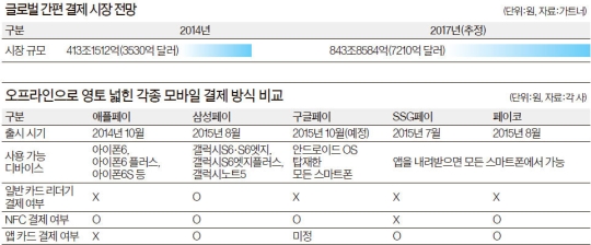 ¡¡¿Ã µé¾î ±¹³»¼­µµ ¾ÖÇÃÀÇ µÚ¸¦ ÀÌÀº ÈÄ¹ß ÁÖÀÚµéÀÌ µîÀåÇϱ⠽ÃÀÛÇß´Ù. ¡®»ï¼ºÆäÀÌ¡¯, ½Å¼¼°è°¡ ³»³õÀº ¡®SSGÆäÀÌ¡¯, NHN¿£ÅÍÅ×ÀÎ¸ÕÆ®°¡ Ãâ½ÃÇÑ ¡®ÆäÀÌÄÚ(PAYCO)¡¯ µî °¢Á¾ ¸ð¹ÙÀÏ °áÁ¦ ¼­ºñ½º°¡ ÀÕµû¶ó Ãâ½ÃµÆ´Ù. ±¸±Ûµµ ´ÙÀ½´Þ LGÀüÀÚ ÈÞ´ëÀüÈ­¸¦ ºñ·ÔÇØ ¾Èµå·ÎÀÌµå ¿î¿µÃ¼Á¦(OS)¸¦ žÀçÇÑ ½º¸¶Æ®Æù¿¡¼­ ¾µ ¼ö ÀÖ´Â ¡®±¸±ÛÆäÀÌ¡¯¸¦ ³»³õ´Â´Ù.