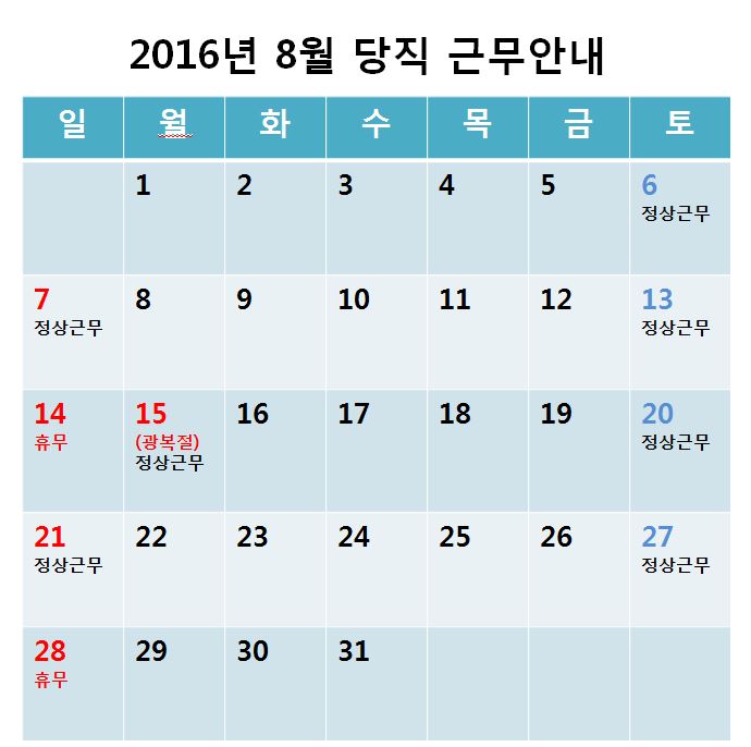 [2016³â 8¿ù ÁÖ¸» ¹× °øÈÞÀÏ ´çÁ÷±Ù¹« ¾È³»]