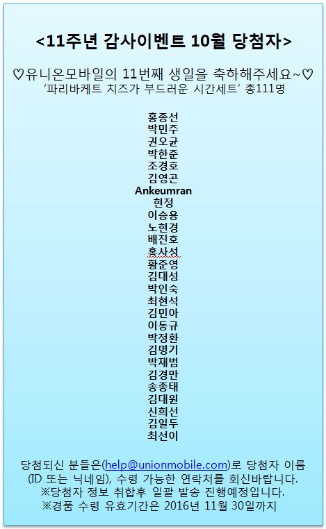 [À̺¥Æ®] À¯´Ï¸ð¿Í ÇÔ²²ÇÏ´Â 11Áֳ⠰¨»çÀ̺¥Æ® 10¿ù ´ç÷ÀÚ °øÁö