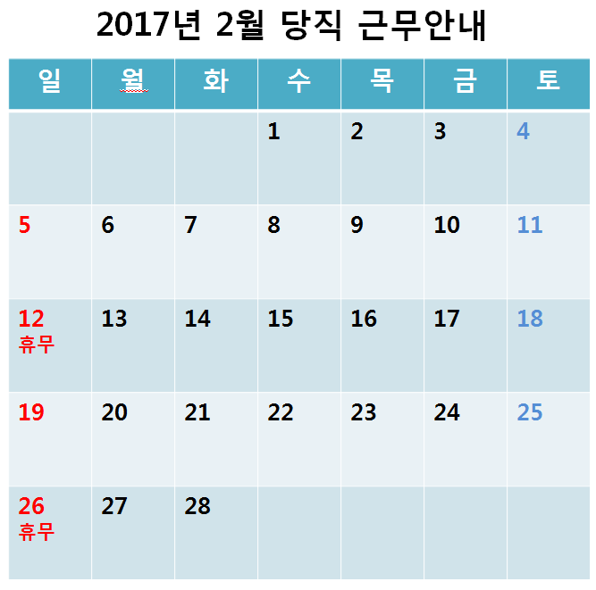 [2017³â 2¿ù ÁÖ¸» ¹× °øÈÞÀÏ ´çÁ÷±Ù¹« ¾È³»]