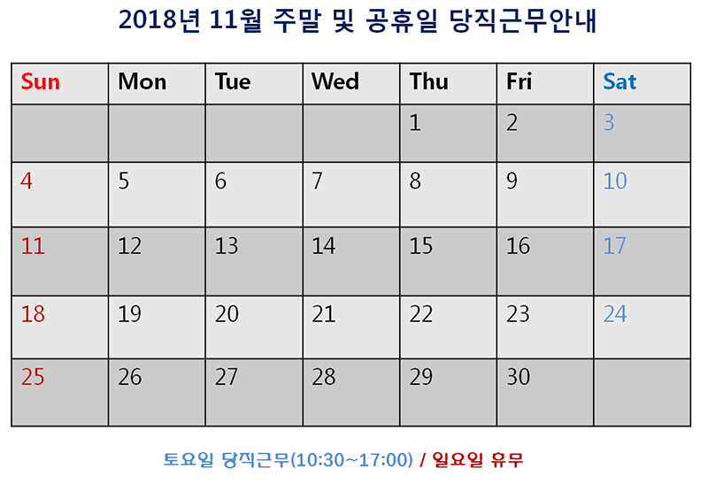 [2018³â 11¿ù ÁÖ¸» ¹× °øÈÞÀÏ ´çÁ÷±Ù¹« ¾È³»]