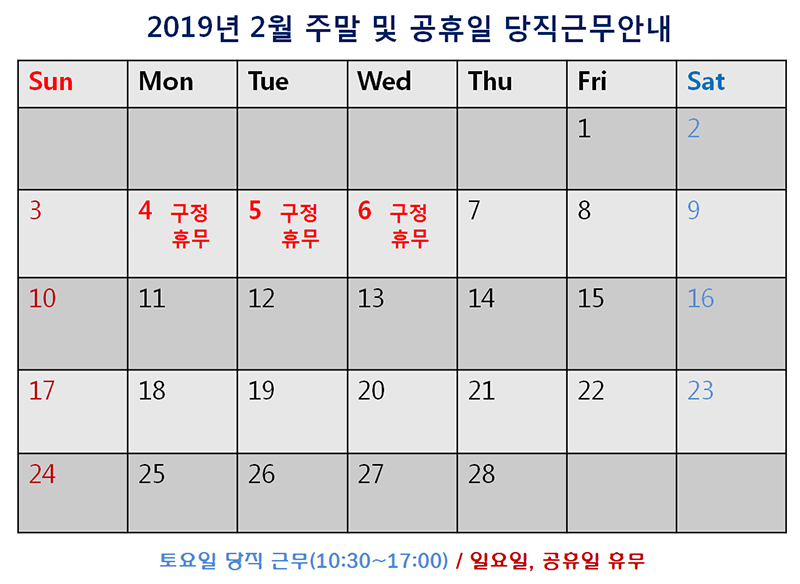 [2019³â 2¿ù ÁÖ¸» ¹× °øÈÞÀÏ ´çÁ÷±Ù¹« ¾È³»]