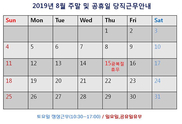 [2019³â 8¿ù ÁÖ¸» ¹× °øÈÞÀÏ ´çÁ÷±Ù¹« ¾È³»]