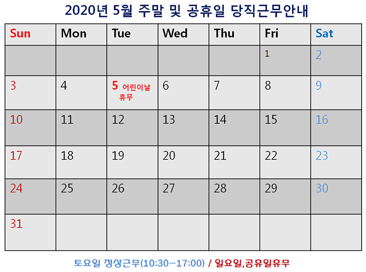[2020³â 5¿ù ÁÖ¸» ¹× °øÈÞÀÏ ´çÁ÷±Ù¹« ¾È³»]