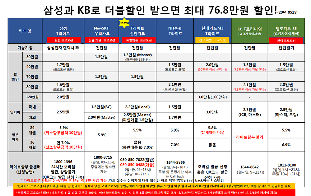 ¡Ø[Çʵ¶] Á¦ÈÞÄ«µå °áÇսà 1. Á¦ÈÞÄ«µå ÇÒÀÎÀº Ä«µå°áÁ¦±Ý¾×¿¡¼ ÀÚµ¿ÇÒÀεǸç, °³ÅëÀϷκÎÅÍ 14ÀÏ À̳»¿¡ Ä«µå»ç¿¡¼ Ä«µå¹ß±Þ ÈÄ ÀúÈñ °í°´¼¾ÅÍ·Î Çʼö·Î µî·Ï ¿äÃ»ÇØ ÁÖ¼Å¾ß µË´Ï´Ù.2. Á¦ÈÞÄ«µå ÇÒÀÎ ÇýÅÃÀº Ä«µåº° Àü¿ù »ç¿ë ½ÇÀû¿¡ µû¶ó ´Ù¸£¸ç, °í°´´ÔÀÇ ÀÌ¿ë½ÇÀû¿¡ µû¶ó ÇÒÀÎ ±Ý¾×Àº ´Þ¶óÁú ¼ö ÀÖ½À´Ï´Ù. (Ç¥½Ã±Ý¾×Àº ÃÖ´ëÇÒÀÎ °¡´É±Ý¾×ÀÓ) 3. ±â±â º¯°æ½Ã ±âÁ¸ Á¦ÈÞÄ«µå ±×´ë·Î ÀÌ¿ëÇϽô °æ¿ì¿¡µµ ÀúÈñ °í°´¼¾ÅÍ·Î Çʼö·Î µî·Ï ¿äÃ»ÇØ ÁÖ¼Å¾ß µË´Ï´Ù.