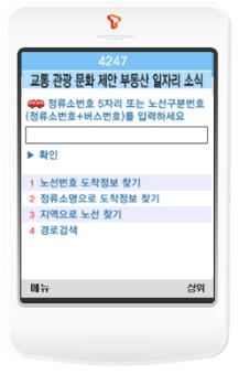2008³â »ó¡¤ÇϹݱâ Winc ¼­ºñ½º ÀÌ¿ë ¼øÀ§ 1À§¸¦ Â÷ÁöÇÑ °æ±âµµ ¹ö½ºÁ¤º¸ ¼­ºñ½ºÀÎ ¡®4247¡¯°ú °æ±âµµÀÇ ´Ù¾çÇÑ µµÁ¤¼Ò½ÄÀ» ½Å¼Ó¡¤Á¤È®ÇÏ°Ô Á¦°øÇÏ´Â ¸ð¹ÙÀϰæ±â ¡®3599¡¯°¡ µµ¹Î ÆíÀǸ¦ À§ÇØ ¡®4247¡® ÇϳªÀÇ ¹øÈ£·Î ÅëÇյƴÙ.