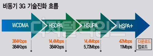 À̸£¸é ¿Ã ÇϹݱâºÎÅÍ ±¹³» À̵¿Åë½Å»çµéÀÌ ºñµ¿±â½Ä 3¼¼´ë(G) À̵¿Åë½ÅÀÇ ¸¶Áö¸· ÁøÈ­´Ü°èÀÎ HSPA+ ±â¼úÀ» µµÀÔÇÑ´Ù. HSPA+´Â ÀÌ·ÐÀûÀ¸·Î ´Ù¿î·Îµå ÃÖ´ë 42Mbps, ¾÷·Îµå ÃÖ´ë 11Mbps·Î ÇöÀçÀÇ HSPA(HSDPA, HSUPA) ¸Áº¸´Ù °¢°¢ 3¹è, 2¹è°¡·® ºü¸¥ °ÍÀÌ Æ¯Â¡ÀÌ´Ù.