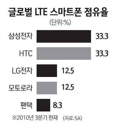 28ÀÏ ¾÷°è¿¡ µû¸£¸é ±¹»ê LTE ½º¸¶Æ®ÆùÀÇ ±¹³»½ÃÀå Á¡À¯À²Àº ¾ÐµµÀûÀÌ´Ù. ÇöÀç 115¸¸´ë ÀÌ»óÀÌ ÆÈ·Á ±¹³» LTE °¡ÀÔÀÚ(120¸¸¸í)ÀÇ 95%¸¦ ³Ñ´Â´Ù. ¿Ü±¹°è ¾÷ü·Î´Â HTC°¡ Áö³ 9¿ù LTE ½º¸¶Æ®Æù £§·¹ÀÌ´õ 4G£§¸¦ ³»³ùÀ¸³ª ÇöÀç±îÁö ÆÇ¸Å·®Àº 2¸¸5,000´ë ¼öÁØ¿¡ ºÒ°úÇÏ´Ù. ±¹»ê LTE ½º¸¶Æ®ÆùÀÇ ÀÔÁö°¡ źźÇÑ °ÍÀº ±¹³» ¾÷üµéÀÌ Àû±â¿¡ ½ÅÁ¦Ç°À» Ãâ½ÃÇÏ¸ç ¹ß ºü¸£°Ô ´ëÀÀÇ߱⠶§¹®À¸·Î Ç®À̵ȴÙ. LTE ¼ºñ½º »ó¿ëÈ´Â Àü¼¼°è 17¹øÂ°·Î ½ÃÀÛÇßÁö¸¸ ±¹³» ¾÷üµéÀÌ LTE ½º¸¶Æ®Æù¿¡ Àü·«À» ÁýÁßÇÏ¸é¼ Á¦Ç° ¼ö¿Í ÆÇ¸Å·®Àº ÀÌ¹Ì ¼¼°è ÃÖ°í ¼öÁØÀ¸·Î ¿Ã¶ó¼¹´Ù´Â Æò°¡´Ù.