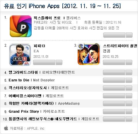 ¾ÆÀÌÆÐµå À¯·á ¾Û ºÎ¹®Àº ¾ÆÀÌÆù À¯·á ¾Û ´Ù¿î·Îµå 1, 2À§ÀÇ ÁÖÀΰøÀÎ ÇȽºÇ÷¹ÀÌ ÇÁ·Î¿Í ÇÇÆÄ13ÀÌ °¢°¢ 2À§¿Í 1À§¸¦ ±â·ÏÇϸ鼭 À¯·á ¾Û ½ÃÀåÀÇ °­ÀÚÀÓÀ» È®ÀνÃÄ×´Ù. ¾ÖÇÃÀÌ ÀÚü °³¹ßÇÑ À½¾Ç ¾Û °Å¶óÁö¹êµåÀÇ 5À§ ±â·ÏÀº ¾ÆÀÌÆÐµå¹Ì´Ï TV ±¤°íÀÇ ¿µÇâÀ¸·Î Ç®À̵ȴÙ.