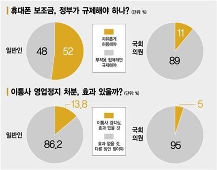 Á¤ºÎ°¡ º¸Á¶±ÝÀ» ±ÔÁ¦ÇÏ´Â °Í¿¡ ´ëÇØ¼­´Â ¹Ý´ë ¿©·ÐÀÌ °ú¹ÝÀ» ³Ñ¾ú´Ù. £§»ç±â¾÷ÀÇ ¸¶ÄÉÆÃ ¼ö´ÜÀÎ µ¥´Ù º¸Á¶±ÝÀ» ¸¹ÀÌ ÁÖ¸é ÈÞ´ëÆùÀ» ½Ñ °ª¿¡ »ì ¼ö ÀÖ´Â ¼ÒºñÀڵ鵵 Àֱ⠶§¹®¿¡ ÀÚÀ¯·Ó°Ô Çã¿ëÇØ¾ß ÇÑ´Ù£§´Â ÀǰßÀÌ 51.8%¸¦ Â÷ÁöÇß´Ù. ¹Ý¸é £§°í°´µé¸¶´Ù õÂ÷¸¸º°·Î º¸Á¶±ÝÀÌ Áö±ÞµÅ °°Àº ÈÞ´ëÆùµµ ´©±¸´Â ½Î°Ô, ´©±¸´Â ºñ½Î°Ô »ç´Â ºÎÀÛ¿ëÀ» ¾ø¾Ö·Á¸é ±ÔÁ¦¸¦ ÇØ¾ß ÇÑ´Ù£§´Â ´äº¯Àº 47.2%¸¦ ±â·ÏÇß´Ù.