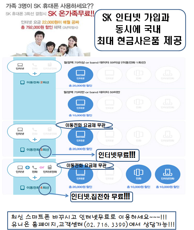 SKT ÈÞ´ëÆù °³ÅëÇϰí ÀÎÅͳÝ+IPTV °¡ÀԽà ÀÎÅÍ³Ý ¹«·á+Ãß°¡ÇýÅà Á¦°ø!!