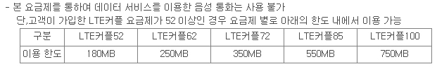 ¾È³çÇϼ¼¿ä, À¯´Ï¿Â¸ð¹ÙÀÏÀÔ´Ï´Ù. SKT LTE Ä¿Çà ¿ä±ÝÁ¦ Ãâ½Ã ¾È³» µå¸³´Ï´Ù. ![]() ¨ç °¡ÀÔ/º¯°æÃ¤³Î: SKÅÚ·¹ÄÞ ´ë¸®Á¡/ÁöÁ¡,¿Â¶óÀÎT world,°í°´¼¾ÅÍ¿¡¼ °¡ÀÔ/º¯°æ °¡´É ¨è °¡ÀÔ(Á¦ÇÑ)Á¶°Ç - LTE½º¸¶Æ®Æù ´Ü¸»¸¸ °¡ÀÔ °¡´É(PPS, HDNµî ¼±ºÒÆù ¹× ¸ðµ©Àº °¡ÀÔ ºÒ°¡) - 2¸íÀÇ °í°´ÀÌ ¼·Î Ä¿Ç÷ΠÁöÁ¤ÇÏ¿© °¡ÀÔ °¡´É (´Ü, ¿ä±ÝÀº °í°´º°·Î °¢°¢ û±¸) - LTEÄ¿Çà °í°´ °£ ȤÀº, LTEÄ¿Çà - ¿ÃÀοøÄ¿Çà °í°´ °£ Ä¿ÇÃȸ¼± ÁöÁ¤ °¡´É - ¿Â°¡Á·ÇÒÀÎ °¡ÀÔȸ¼±Àº ¿Â°¡Á·ÇÒÀÎ ¼±ÇØÁö ÈÄ °¡ÀÔ °¡´É ¨é ±âº» Á¦°ø µ¥ÀÌÅÍ ÅëÈ ÀÌ¿ë °ü·Ã - ±âº» Á¦°ø µ¥ÀÌÅÍ ÅëÈ·®¿¡´ÂLTE½º¸¶Æ®ÆùÀ» ÅëÇØ »ç¿ëÇÑ (LTE¹×WCDMA³×Æ®¿öÅ© Á¢¼Ó Æ÷ÇÔ) ¸ðµç ±¹³» µ¥ÀÌÅÍ ÅëÈ·á Æ÷ÇÔ - ½º¸¶Æ®Æù µî À̵¿ÀüÈ ´Ü¸»À» ³ëÆ®ºÏ µî À̵¿±â±â¿Í ºí·çÅõ½º/USBÄÉÀÌºí µîÀ¸·Î ¿¬°áÇÏ¿© ÀÎÅͳݿ¡ Á¢¼ÓÇÏ´Â °æ¿ì(Å×´õ¸µ)µµ ±âº» Á¦°ø µ¥ÀÌÅÍ ÅëÈ¿¡ Æ÷ÇÔ - ÀÎÅͳÝÁ÷Á¢Á¢¼Ó ±¸ºÐ ¢Ñ ÀÎÅͳÝÁ÷Á¢Á¢¼Ó:½º¸¶Æ®Æù µî À̵¿ÀüÈ ´Ü¸»¿¡¼ ºê¶ó¿ìÀú¸¦ ÅëÇÏ¿© ÀÎÅͳݿ¡ Á¢¼ÓÇÏ´Â °æ¿ì ¢Ñ ÀÎÅͳÝÁ÷Á¢Á¢¼Ó(Å×´õ¸µ) :À̵¿ÀüÈ ´Ü¸»À» ³ëÆ®ºÏ µî À̵¿±â±â¿Í ºí·çÅõ½º/ USBÄÉÀÌºí µîÀ¸·Î ¿¬°áÇÏ¿© ÀÎÅͳݿ¡ Á¢¼ÓÇÏ´Â °æ¿ì ![]() ¨ê ±âº» Á¦°ø À½¼º ÅëÈ ÀÌ¿ë °ü·Ã - ¿ù Áß ¿ä±ÝÁ¦ º¯°æ ½Ã ±âº» Á¦°ø ÇýÅÃÀº °¢°¢ ÀÏÇÒ °è»êµÇ¸ç,±âº» ÇýÅà Àû¿ëÀº ¿ä±ÝÁ¦ º¯°æ ½ÃÁ¡ ÀÌÈĺÎÅÍ Àû¿ë(º¯°æ ½ÃÁ¡ ÀÌÀü¿¡ ¹ß»ýÇÑ ÅëÈ¿¡ ´ëÇØ¼´Â Ãʰú ±Ý¾× ¹ß»ý °¡´É) ¨ë Ä¿Çà °£ ÇýÅà ÀÌ¿ë °ü·Ã - Ä¿Çà °£ ¹®ÀÚ(SMS)/Ä÷¯¸ÞÀÏ(MMS)/¸ð¹ÙÀϸ޽ÅÀú ¹«Á¦ÇÑ ¹«·á´Â ÈÞ´ëÆù¿¡¼ ÈÞ´ëÆùÀ¸·Î º¸³½ °Í¿¡ ÇÑÇϸç, Á¤º¸ÀÌ¿ë·á´Â º°µµ û±¸µÊ.(¸ð¹ÙÀϸ޽ÅÀú ³» ³×ÀÌÆ®¿Â ´ëÈ´Â ¹«·á´ë»ó¿¡ ¹ÌÆ÷ÇÔ) - Âø½ÅÀüȯ¿¡ ÀÇÇØ Ä¿Çð£ ÅëȰ¡ ÀÌ·ç¾îÁø °æ¿ì, Ä¿Çà °£ ¹«·áÇýÅÃÀÌ Àû¿ëµÇÁö ¾ÊÀ½. - Ä¿Çà Áß ÇÑ °í°´ÀÌ ÇØÁöÇϰųª ´Ù¸¥ ¿ä±ÝÁ¦·Î º¯°æÇÏ´Â °æ¿ì, ³²Àº Ä¿Çà °í°´°ú ¿¬¶ô ÇÏ¿© ´Ù¸¥ ¿ä±ÝÁ¦·Î º¯°æÀ» ±ÇÀ¯Çϸç, ¿¬¶ôÀÌ ¾ÈµÇ°Å³ª º¯°æÇÒ ¿ä±ÝÁ¦°¡ ÁöÁ¤µÇÁö ¾ÊÀ» °æ¿ì´Â µ¿ÀÏÇÑ ±âº»·áÀÇ LTE ¿ä±ÝÁ¦·Î º¯°æµÊ. (¿¹:LTEÄ¿ÇÃ100 ¡æ LTE100) - Ä¿Çà Áß ÇÑ °í°´ÀÌ Á÷±ÇÇØÁöµÇ°Å³ª ´Ù¸¥ Åë½Å»ç·Î ¹øÈ£À̵¿ÇÒ °æ¿ì ³²Àº Ä¿ÇÃ°í°´Àº µ¿ÀÏÇÑ ±âº»·áÀÇ LTE ¿ä±ÝÁ¦·Î º¯°æµÊ.(¿¹:LTEÄ¿ÇÃ100 ¡æ LTE100) ¨ì Àå±â°¡ÀÔÇÒÀÎ ¹× ·¹Àκ¸¿ìÆ÷ÀÎÆ® Àû¸³ ¹ÌÀû¿ë ¡Ø LTEÇ÷¯½ºÇÒÀÎ °¡ÀÔ °¡´É - LTE½º¸¶Æ®Æù ¿ä±ÝÁ¦´ÂLTEÇ÷¯½ºÇÒÀÎ ÀÌ¿ëÀÌ °¡´ÉÇÑ ¿ä±ÝÁ¦ÀÔ´Ï´Ù. |