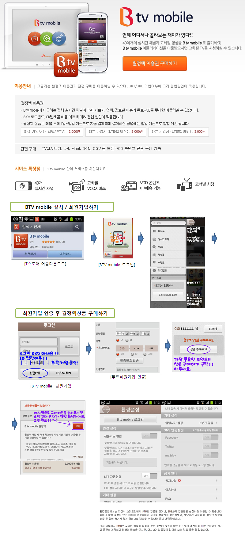SKT Btv¸ð¹ÙÀÏ(Btv Mobile) ¼­ºñ½º °¡ÀÔ ¹× FAQ ¾È³»