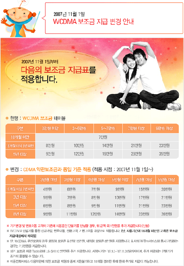 WCDMAÆùÀÇ ¾à°ü º¸Á¶±ÝÀÌ 11¿ùºÎÅÍ º¯°æÀû¿ëµË´Ï´Ù.