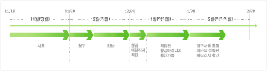 ¿¹> 11¿ù 10ÀÏ¿¡ °¡ÀÔÇϽŠ°í°´´ÔÀÇ °æ¿ì, 11/10~11/20±îÁöÀÇ ±¹Á¦ÅëÈ·á¿¡ ´ëÇÏ¿© 1¿ù¿¡ Àû¸³µË´Ï´Ù.