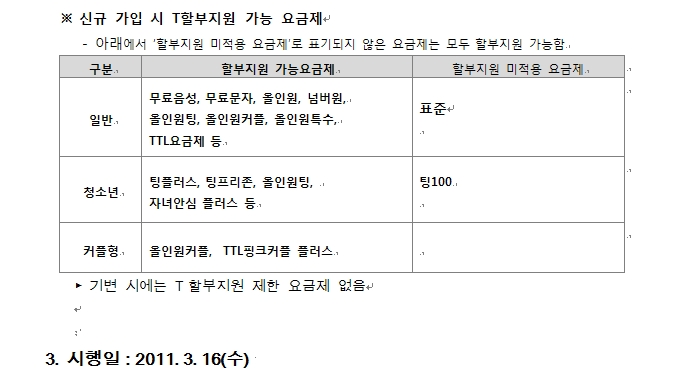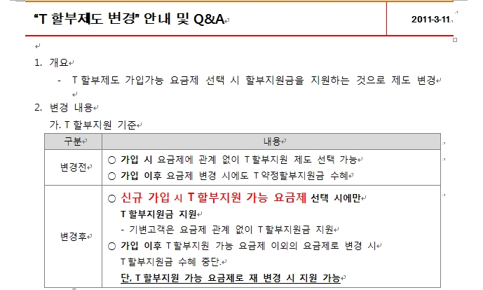 Á¦¸ñ ¡æ SKT ¡°TÇÒºÎÁ¦µµ º¯°æ¡± ¾È³» ¹× Q&A - 2011³â 3¿ù16ÀÏ |